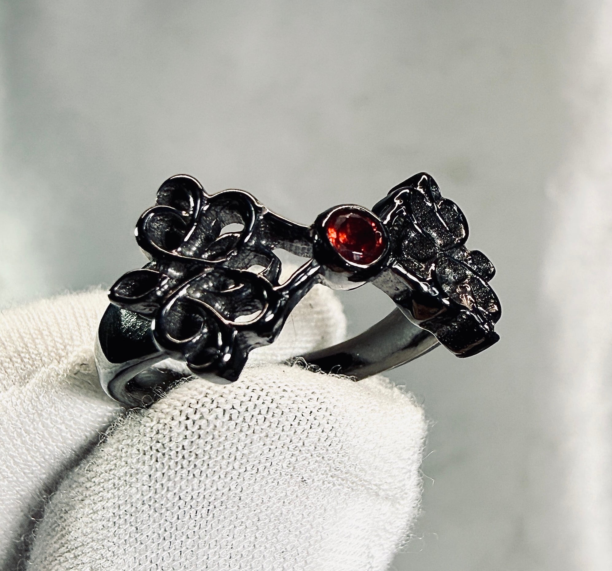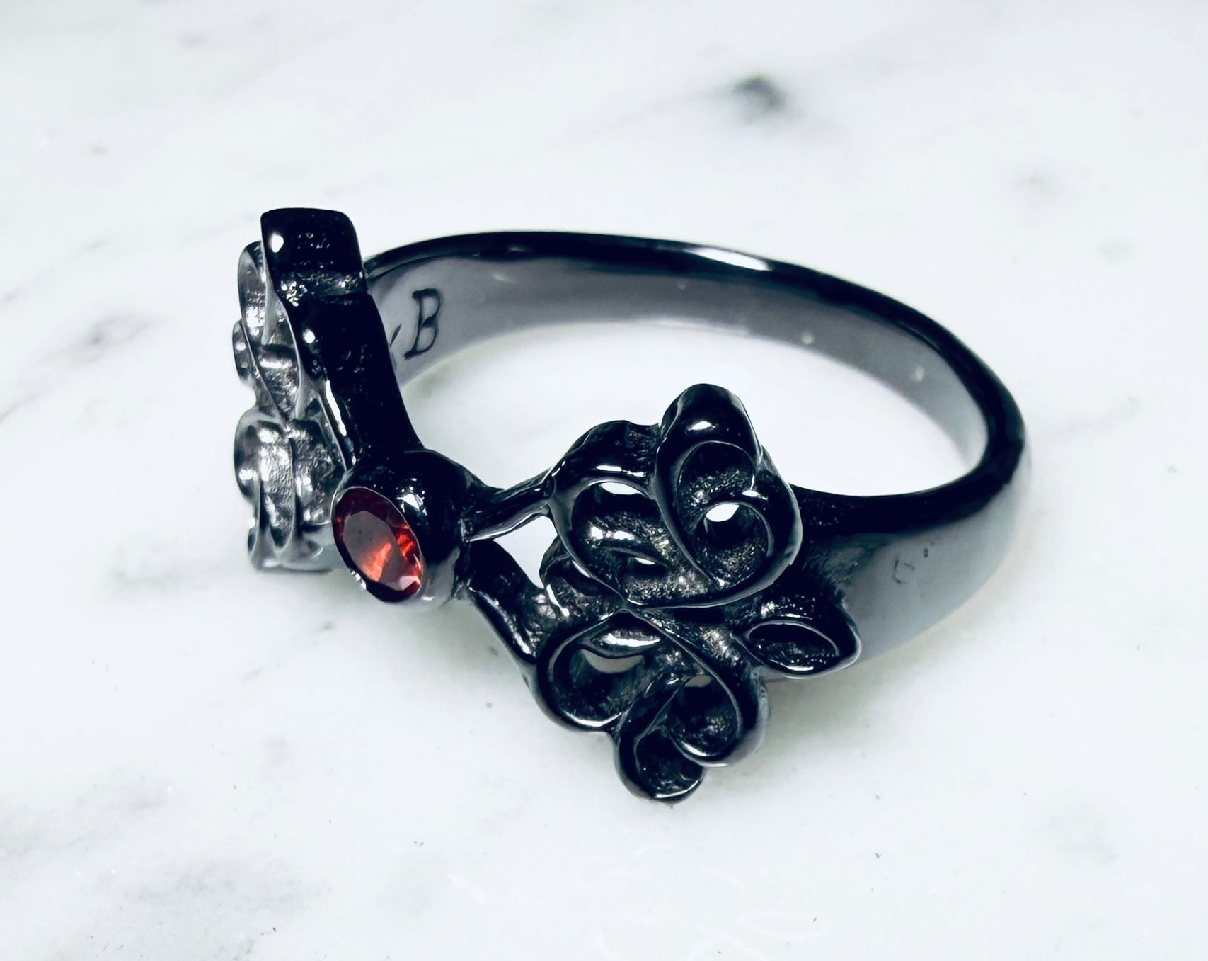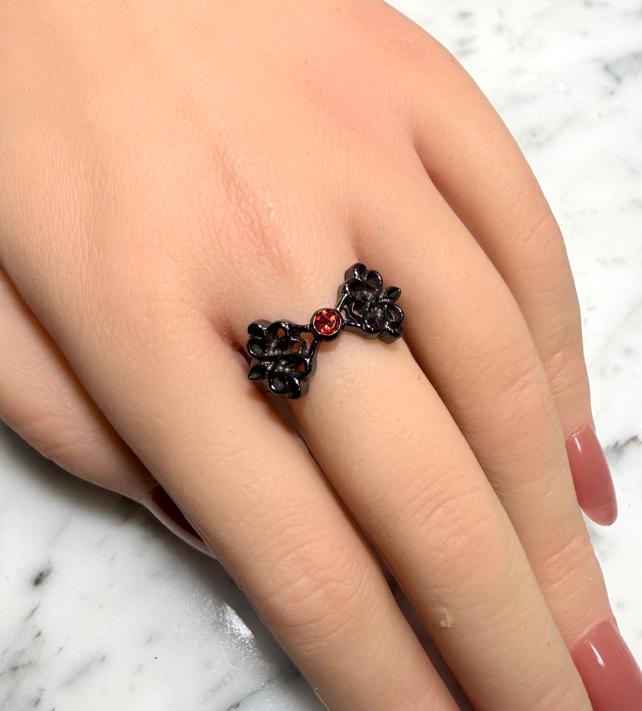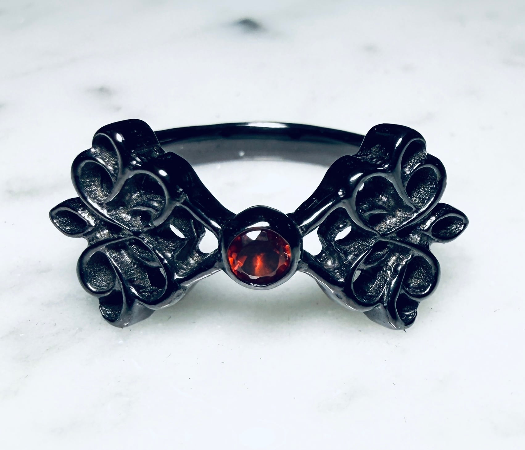 ☆シンデレラサイズ特価品(16号)☆ BLACK インペリアル リボン リング with ガーネット