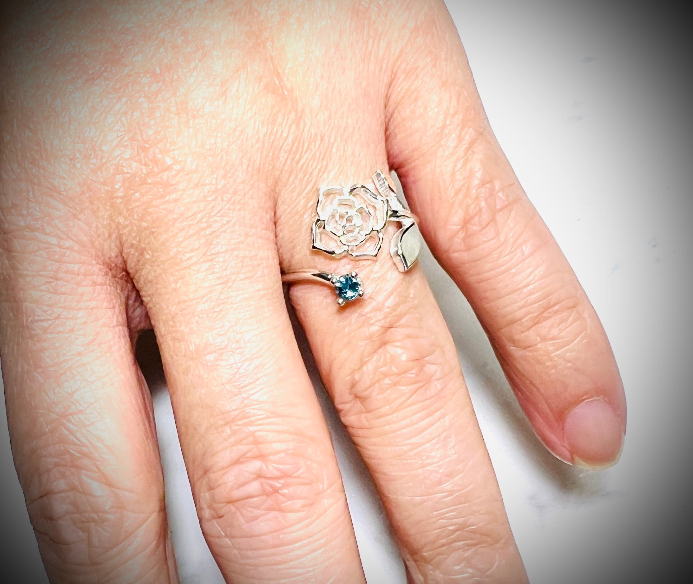 そして棘無しの茎を伸ばして、その先端に石をセットしたシンプルなフリーサイズのリングです٩( ᐛ )و