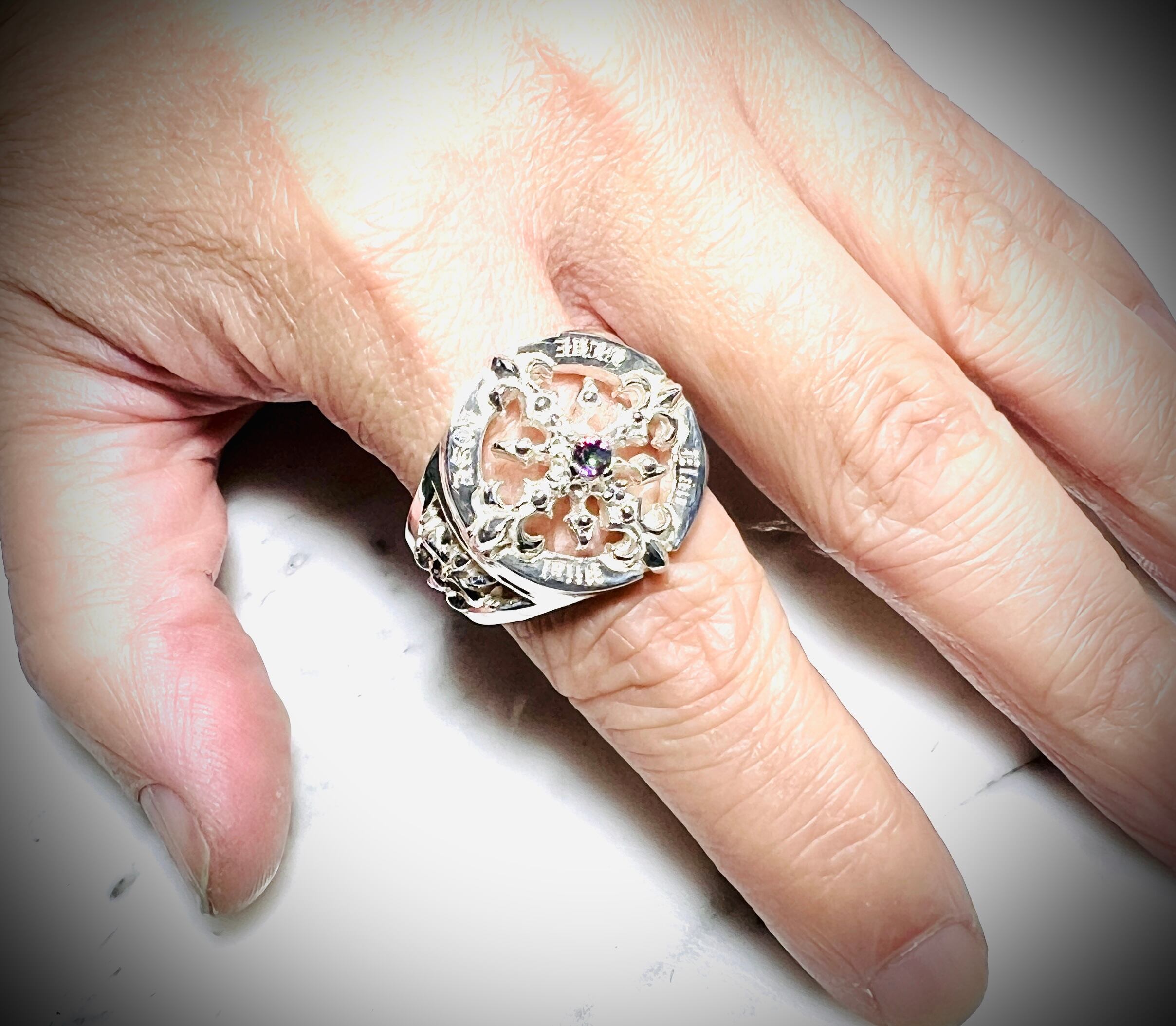 ☆シンデレラサイズ特価品(23号)☆ レディエーションクロスコインリングwith 特殊加工ミスティックトパーズ