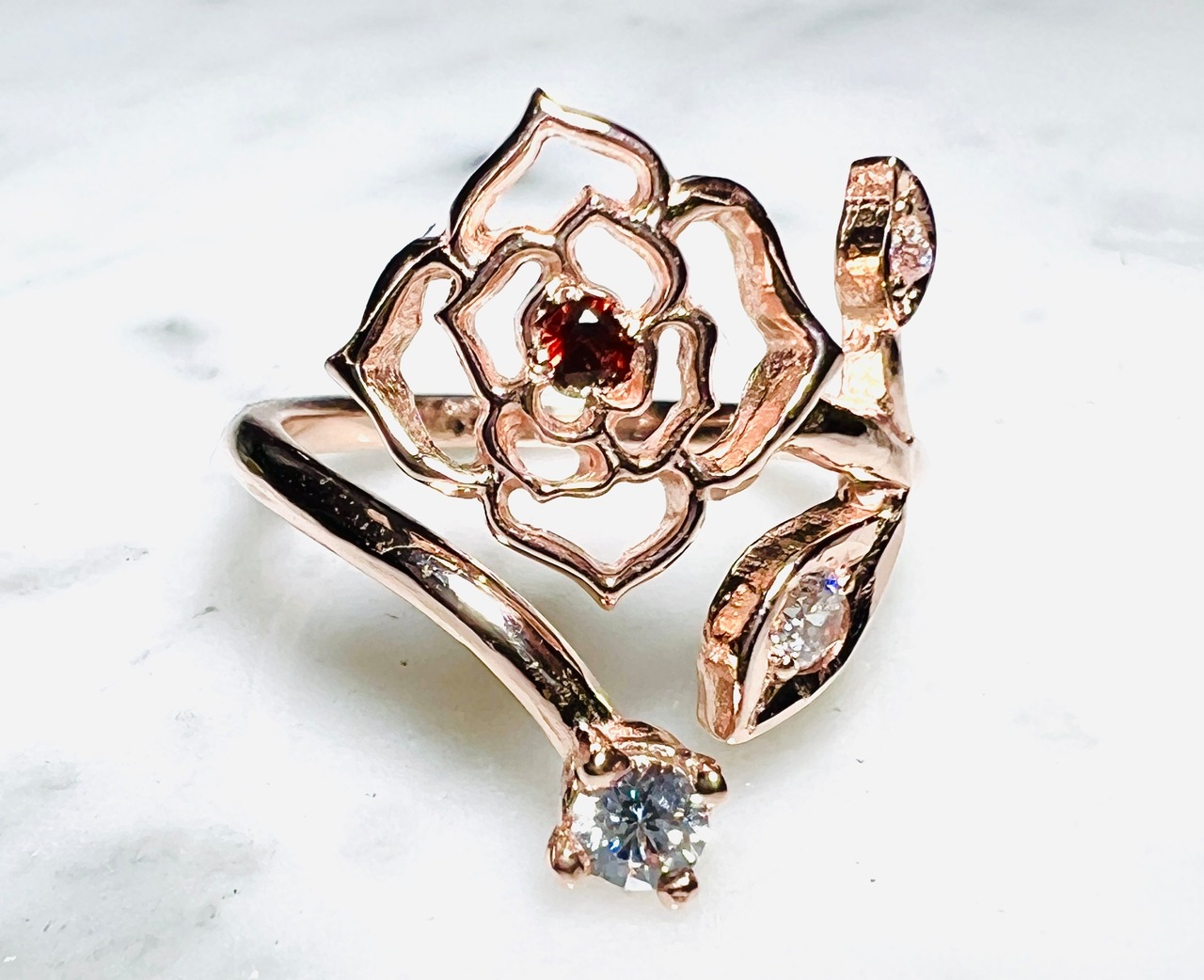 そして棘無しの茎を伸ばして、その先端に石をセットしたシンプルなフリーサイズのリングです٩( ᐛ )و