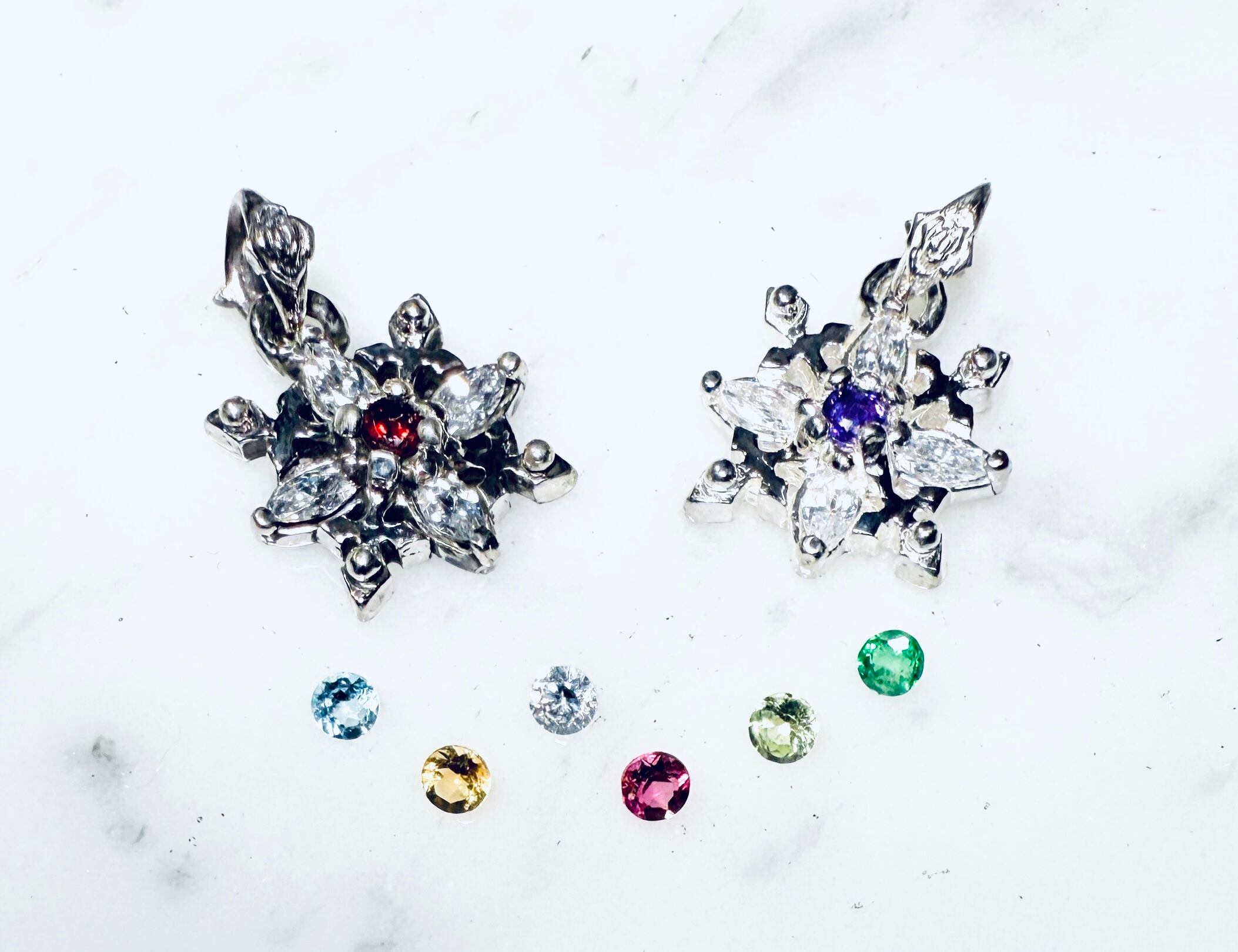 ペンダント部分をイエローやピンクゴールド、ブラックコーティングも可能です♪その場合は、カテゴリーのカスタムから1500円を+で同時購入で備考欄に石と合わせてご記入下さい(^人^)
