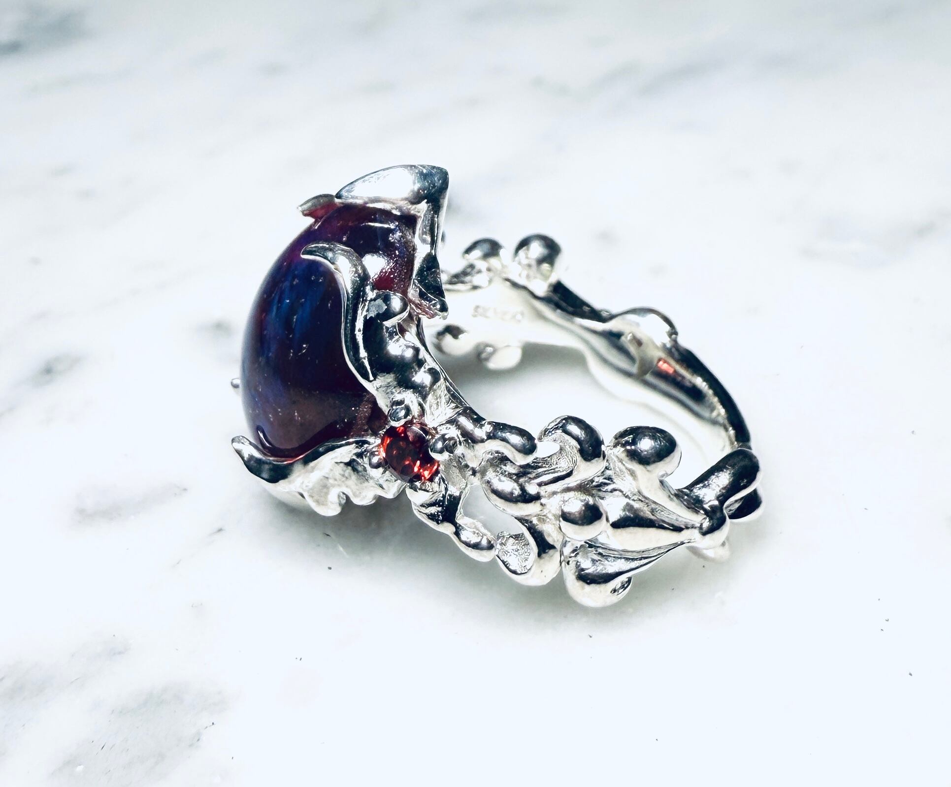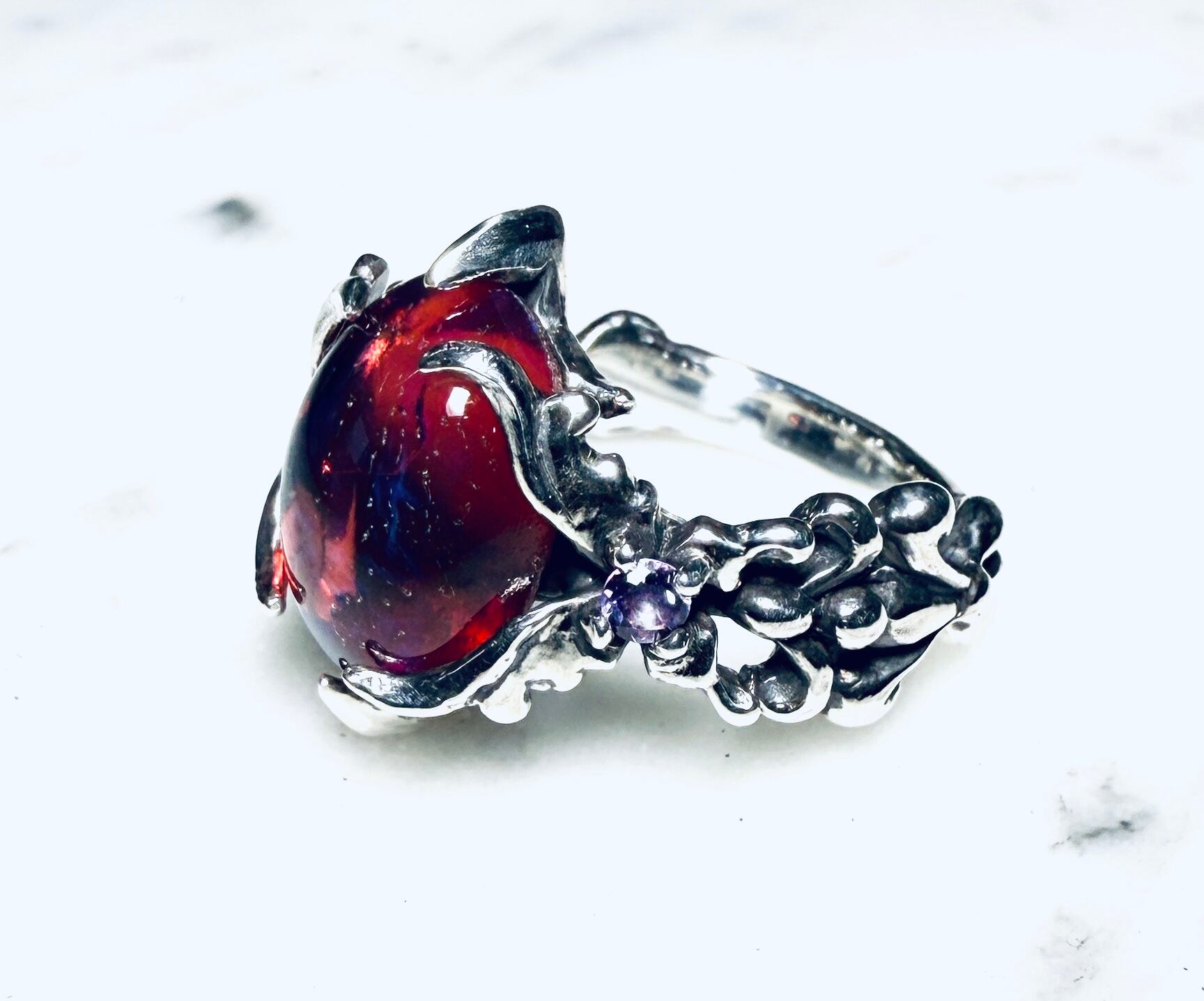 いにしえの竜が吹いた炎をそのまま閉じ込めた様なヴィンテージチェコガラス。 真紅色に青がゆらりと浮かぶのがヴィンテージドラゴンズブレスの代表的な色です。